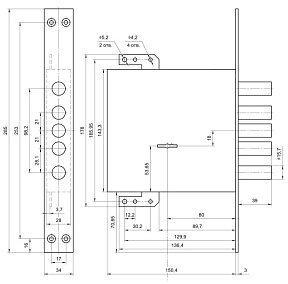 Замок врезной сувальдный ЗВ8-8 МК5Т с тягами, 5 кл. /71605/