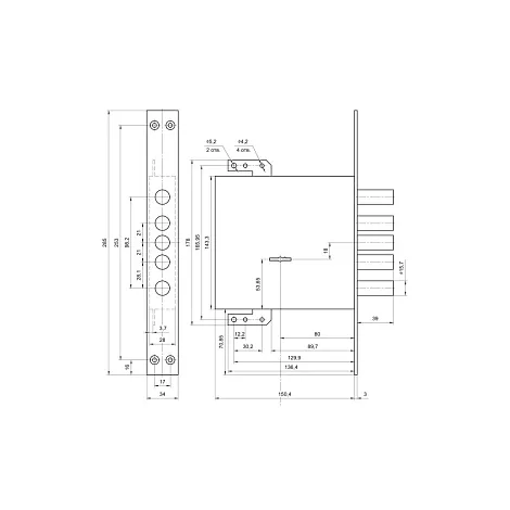 - Расстояние между крепежными отверстиями253
