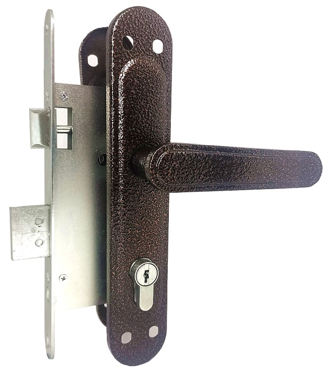 Замок Zenit врезной цилиндровый с защёлкой в комплекте с ручкой ЗВ4-72.03 (медь), 4 кл.