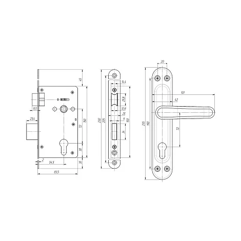 Замок имеет популярные на вторичном рынке посадочные размеры. Является полным аналогом замка ЗВ7 ЗАЗ. Межосевое расстояние 72 мм. Благодаря конструкции может устанавливаться как в деревянные, так и в металлические двери. Замок комплектуется ручками на планке, ответной планкой и цилиндром 70 мм. Гарантия: 1 год.