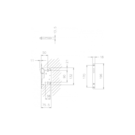 - Расстояние между передней частью замка и осью рукоятки: 50 мм