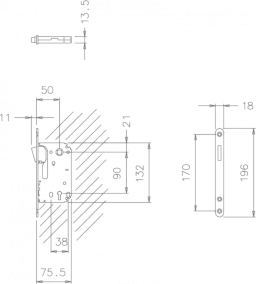 - Расстояние между передней частью замка и осью рукоятки: 50 мм