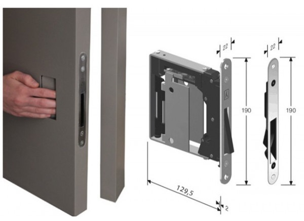 Замок для скрытых дверей Bonaiti B NO-HA Mini 938 + регулируемая ответка 992 матовый хром