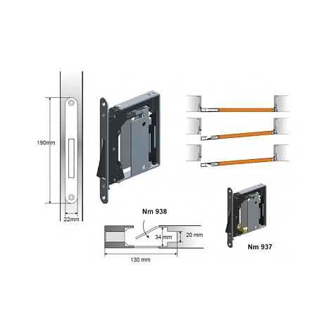 Механизм Bonaiti Art 938 в цвете матовый хром (B-No ha mini). В комплект входит регулируемая ответная планка 992. Используется для установки в межкомнатные деревянные двери. Гарантия: 1 год.