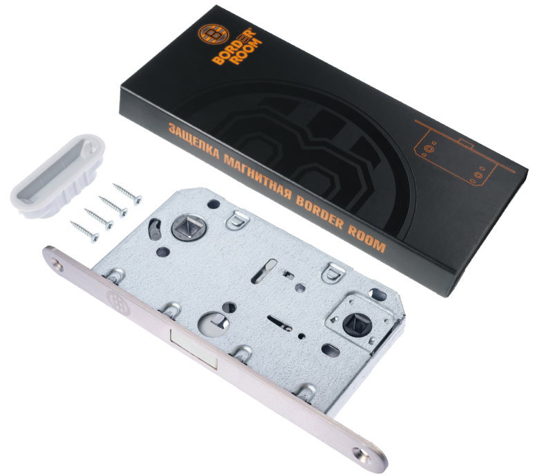 Border Механизм магнитный WC - серия замков и защелок для межкомнатных дверей комфорт-класса. Изготавливаются по европейской технологии, устройство внутреннего механизма запатентовано. Обеспечивают долговечную и бесшумную работу в межкомнатных дверях жилых и офисных помещений. Лицевые и ответные планки имеют дизайнерскую палитру исполнения: хром, сатин, никель, серебро, золото, бронза, белый, черный, кофе. Гарантия: 1 год.