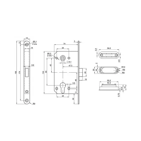 - Удаление отверстия (BACKSET)47.5 мм