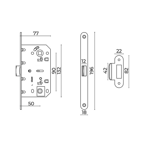 Дверная защелка Ajax врезная METLM90-50. Предназначена для установки в деревянные межкомнатные двери. Гарантия: 1 год.