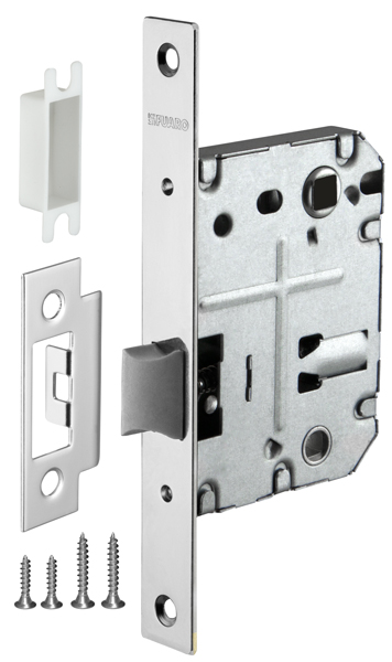 Дверная защелка с пластиковым механизмом Fuaro P72 серии PLASTIC изготовлена в соответствии с требованиями ГОСТ 5089-2003. Предназначена для установки в деревянные межкомнатные двери. Легкая смена направления язычка защелки, подходит для дверей левого и правого открывания. Корпус выполнен из стали с надежным гальваническим покрытием. Ударопрочный пластиковый механизм обеспечивает бесшумность работы защелки. Защелка P72 с усиленным блоком пружин имеет высший 4 класс надежности (250 000 циклов открывания/закрывания). Отверстия под стяжные винты находятся на расстоянии 35-41 мм. Размер бэксета - 50 мм. Размер межосевого расстояния - 70 мм. Возможна установка дверных ручек на стяжные винты для более прочного крепления. Гарантия: 1 год.