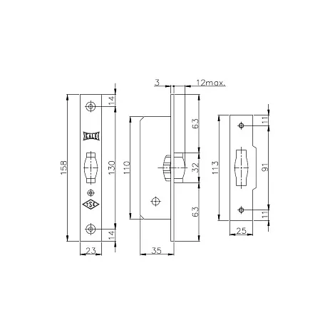 Защёлка Kale Kilit 155/B. Врезной замок для качающихся дверей с роликом-защёлкой. Гарантия: 1 год.