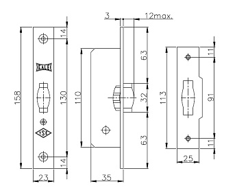 Защёлка Kale Kilit 155/B. Врезной замок для качающихся дверей с роликом-защёлкой. Гарантия: 1 год.