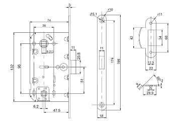 Дверная защелка с пластиковым механизмом Punto PL-96WC предназначена для установки в деревянные межкомнатные и сантехнические двери. Легкая смена направления язычка защелки, подходит для дверей левого и правого открывания. Корпус выполнен из стали. Ударопрочный пластиковый механизм обеспечивает бесшумность работы защелки. Защелка PL-96WC имеет высший 4 класс надежности (250 000 циклов открывания/закрывания). Отверстия под стяжные винты находятся на расстоянии 38 мм. Размер бэксета - 50 мм. Размер межосевого расстояния - 96 мм. Возможна установка дверных ручек на стяжные винты для более прочного крепления. В комплектацию входят: ответная планка с одним отверстием, крепежная фурнитура в цвет изделия, паспорт изделия. Гарантия: 1 год.
