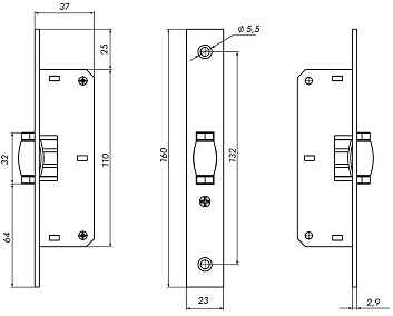 Защелка-ролик врезная LR-155B предназначена для легких дверей. Корпус выполнен из оцинкованной стали, роликовая металлическая защелка . Ширина планки - 23 мм. Ширина защелки - 32 мм. Гарантия: 1 год.