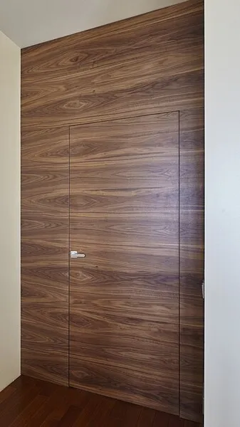 Главная особенность данной конструкции заключается в том, что цвет и фактура стены и дверного полотна выполняются в едином стиле, фактуре и цветовом решении. Системы открывания дверей INVISIBLE производятся только со скрытыми петлями.